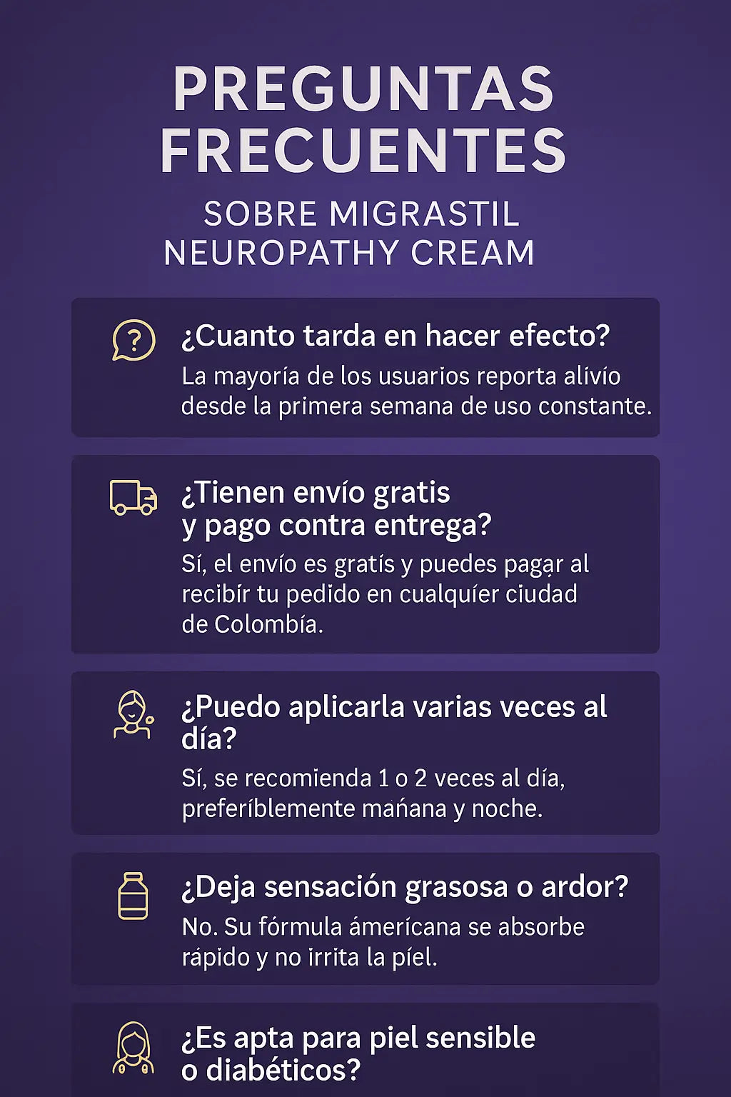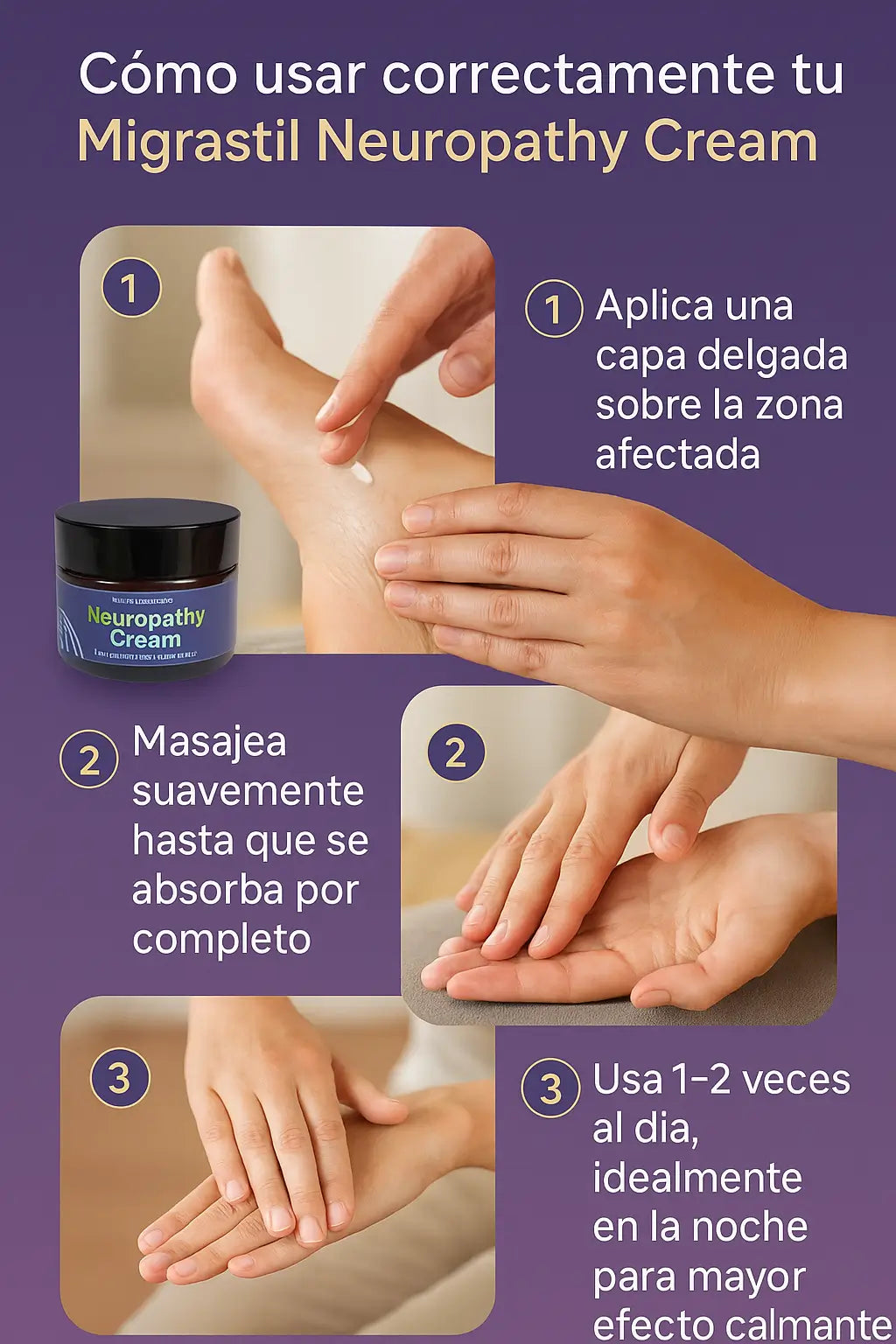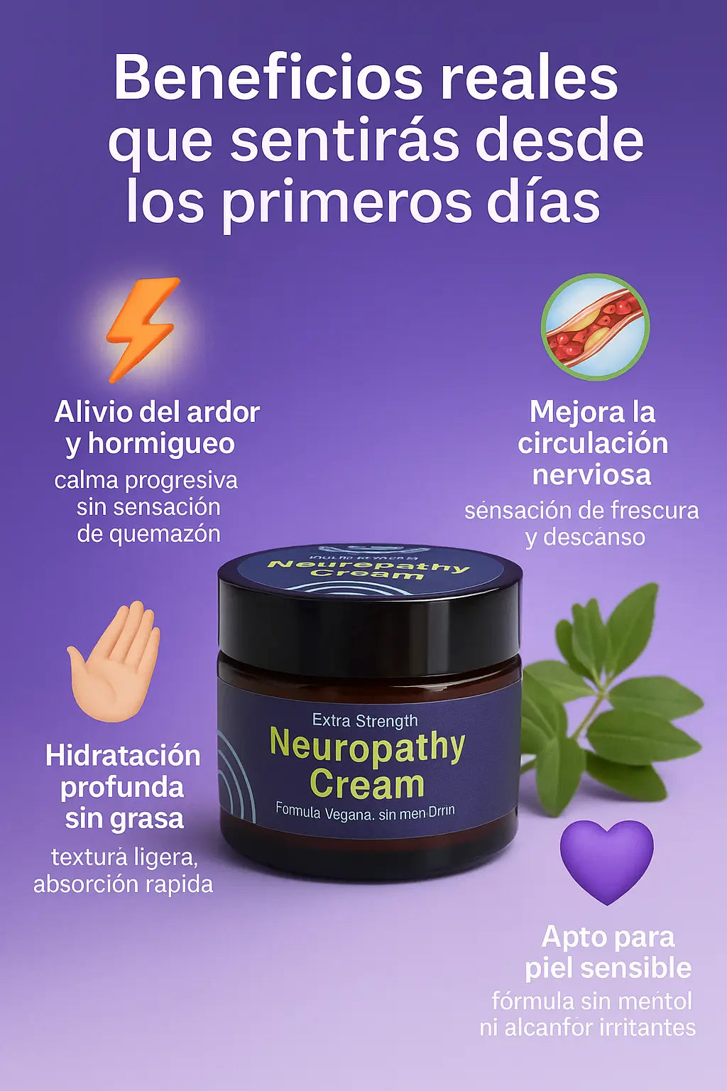 Adormecimiento en manos casi desapareció. Me gustó que es fórmula americana y no deja sensación pegajosa.